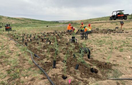 The project consisted of seeding and blanketing both sides of a large creek bed for stabilization and a mixture of straw and hydro mulch along the hillsides parallel to the creek. Over 18,000 willow plugs and 1,700 willow plants were hand installed along the creek, as well as an above-ground irrigation system set to water periodically throughout the week. New EFUs were created with some of the willow plugs in locations where wetland species can assist in controlling the flow of stormwater and keep the water clean. WSR also provided weed control and irrigation maintenance to ensure the success of the new vegetation.